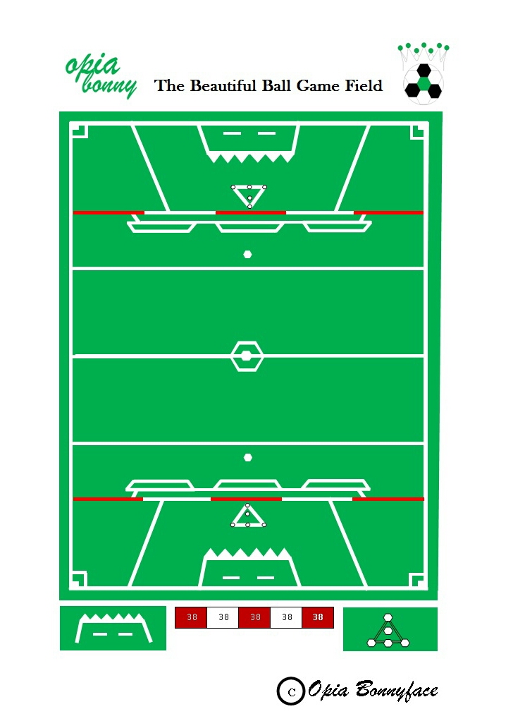 According to Dr. Opia, the game which is packed with various novelties in field design, rules and method of play, is played to achieve goals; the goals are embodied in crowns; the game is performed by 12 players; the 12th player is typically “humanoid” and will be “robotic”.