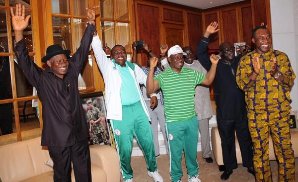 Jonathan Celebrates Fayose And Super Eagles Victories In Aso Rock